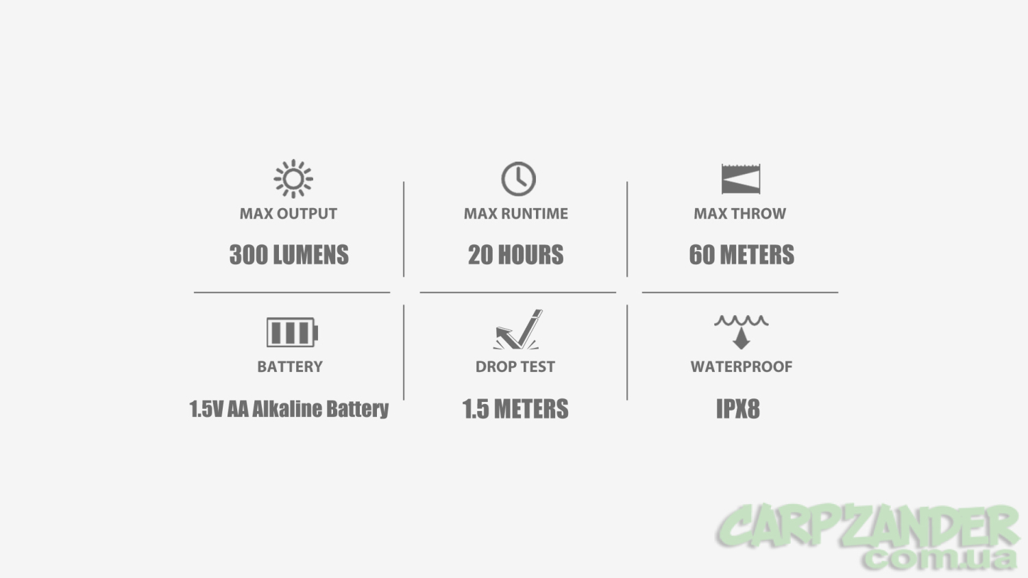 | Час безперервного світіння: | 300 (30) lm - 150 хвилин, 15 lm - 20 годин |