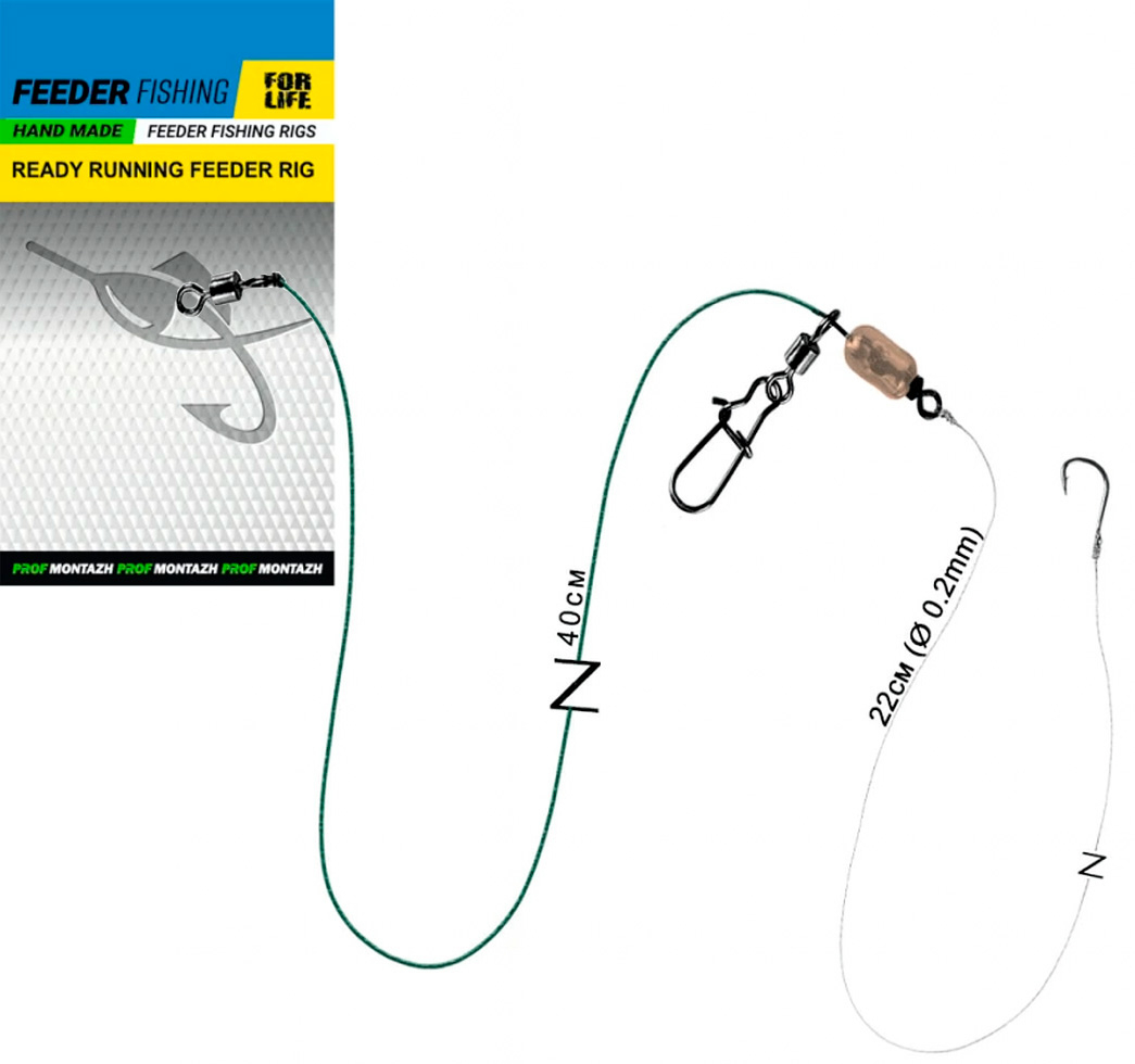 Готовий фідерний монтаж ProfMontazh Running Feeder Rig з повідцем
