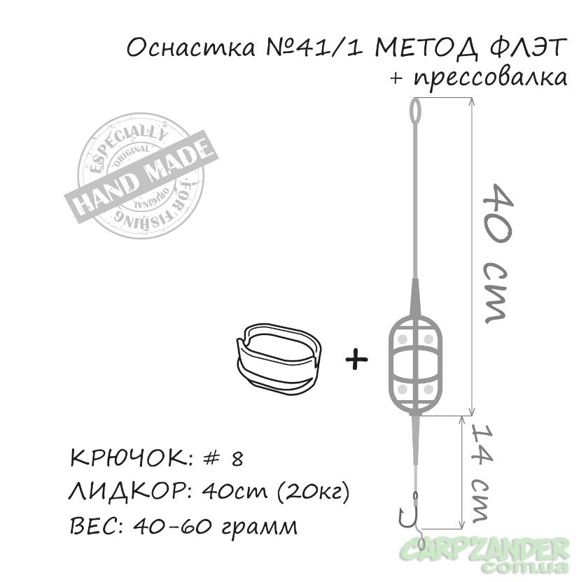 Готовый монтаж Карп ORANGE #41/1 Classic Flat Method Leadcore + Mould (пресовалка) бойл 40g