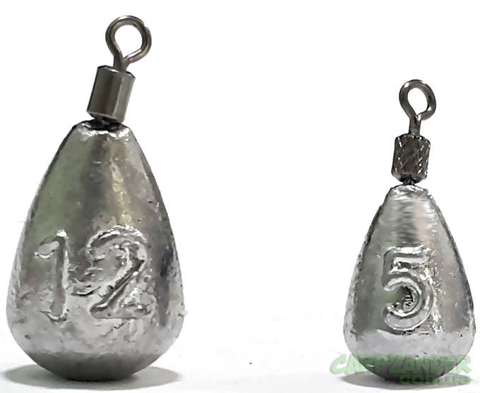 Это неразборный груз с вмонтированным вертлюгом в верхней части. Монтаж с таким грузом собирается на заводном кольце или же прямо на застежке, привязанной к поводку. Применяется в случаях ловли на мягком, заиленном грунте, оставляя крючок с приманкой доступным хищнику даже тогда, когда все тело груза погружено в ил.