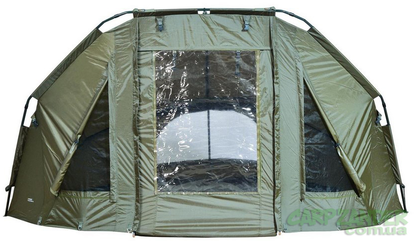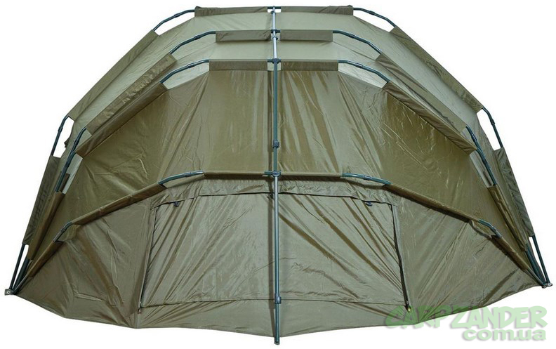 Большая палатка, отличительной особенностью которой является мощный алюминиевый каркас из четырех параллельных труб, между которыми устанавливаются распорки. За счет этого палатка устойчива в ветреную погоду. Отличный выбор для рыболовов, которые нуждаются в надежной и удобной палатке.