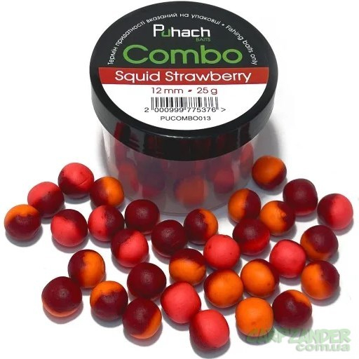 Бойлы Puhach Baits Combo 12mm - Squid Strawberry (Кальмар Клубника)