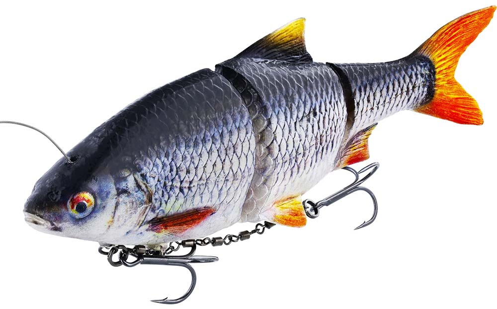 Встроенный вертлюжный механизм снижает рычажное давление, повышая засекаемость и уменьшая количество сходов. Приманка оснащена высокодетализированной окраской на основе реальных изображений плотвы, что делает её максимально правдоподобной. Это не просто приманка – это произведение искусства.