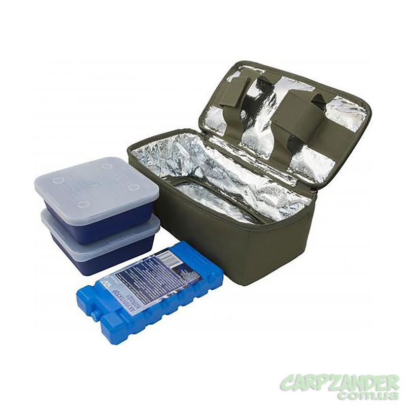 Сумка для длительного хранения живых наживок для рыбной ловли (червь, опарыш и др.), укомплектована аккумулятором холода и двумя коробками 13,5х13,5х5 см.