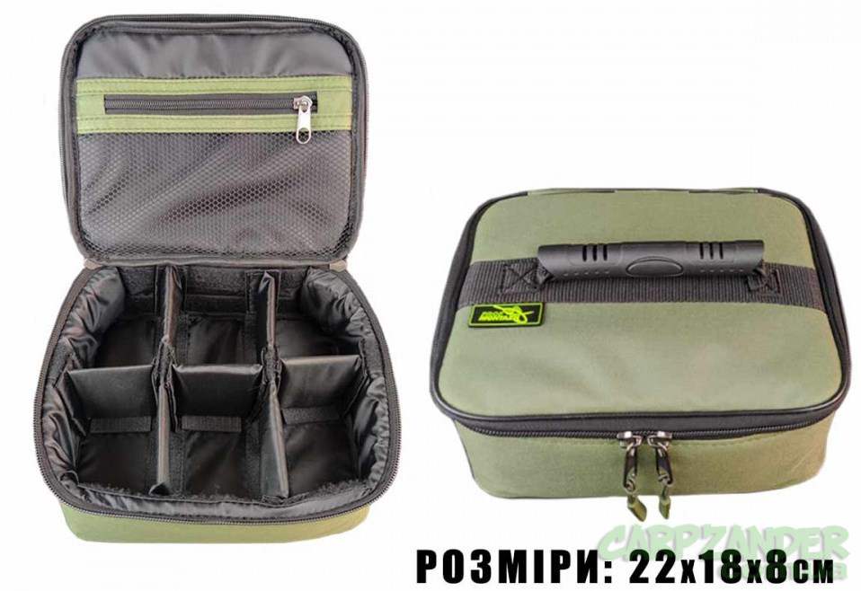 Сумка отлично подходит для кормушек, грузиков, бойлов и других рыболовных аксессуаров. Размер сумки: 22х18х8см, внутри имеется 6 регулируемых отсеков, каждый отсек имеет жесткую вставку и надежно закреплен в 3 точках крепления.Благодаря практически монолитной конструкции сумка отлично подходит для всевозможных грузил или кормушек, содержимое каждой ячейки в процессе эксплуатации не перемешивается друг с другом. Рыболовная сумка для грузил выполнена из прочной, износостойкой ткани OxFord, надежная двойная змейка тракторного типа никогда вас не подведет, а для удобства переноски предусмотрена ручка.