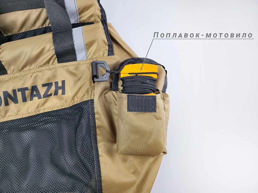 Комплектация: нейлоновый чехол для защиты сумки от влаги и запахов, мотовило-поплавок с лентой.