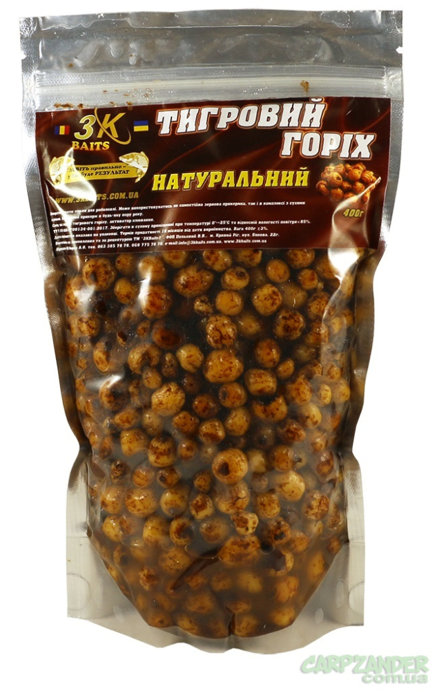 Тигровый орех – известный среди рыбаков-спортсменов и любителей вид карповой прикормки, предназначенной для ловли трофейной рыбы (карпа, амура). Тигровый орех часто используют на водоемах, где много мелкой или сорной рыбы, тем самым избавляются от нежелательных поклевок, так как тигровый орех привлекает в основном карпа и амура. Тигровый орех можно использовать в сочетании с основным кормом, добавляя его в замес, а также как насадку на волос. Орех содержит много сахара, масел, крахмала, клетчатки, а также белки, витамины и минералы. Именно потому следует осторожно использовать данный прикорм, чтобы избежать быстрого насыщения карпа.