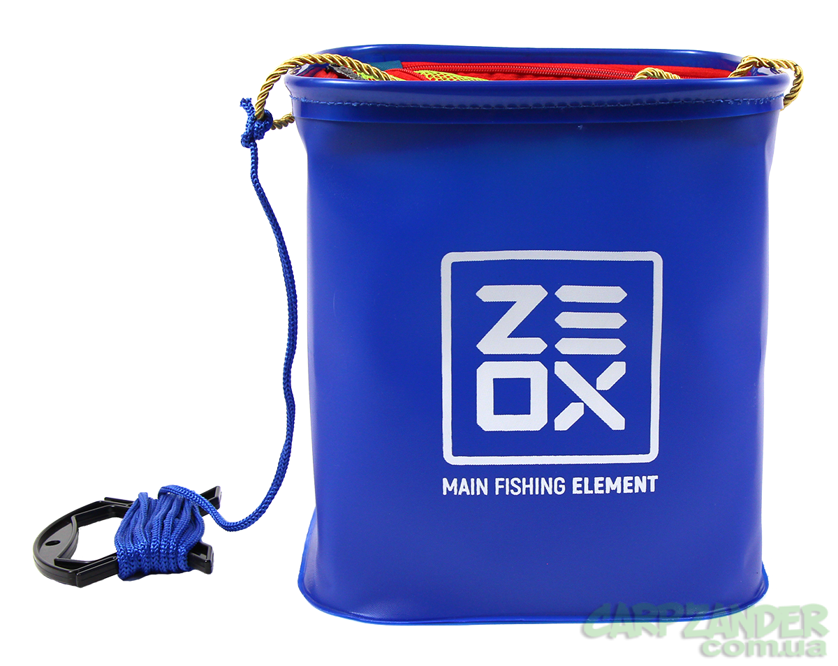 Zeox Bucket with Rope and Mesh - рибальське відро, виконане з м'якого і дуже практичного матеріалу EVA. Головною особливістю є наявність мотовила з мотузкою (3м), завдяки якому кожен рибалка зможе набрати води з високих помостів, пірсів або берегів з утрудненим підходом. Наявність сітки-кришки на блискавках дозволяє застосовувати відро для зберігання дрібної риби з можливістю швидкої заміни води, не побоюючись за збереження улову. Дане відро є в двох об’ємах: 8 і 15 літрів.