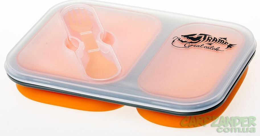 Контейнер Tramp складний силіконовий 2 відділи з кришкою клямкою помаранчевий 900ml (з ложкою-вилкою)