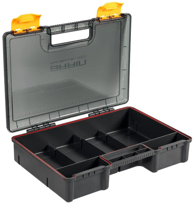 Надійні застібки запобігають випадковому відкриванню під час транспортування, а зручна ручка дозволяє легко переносити коробку.