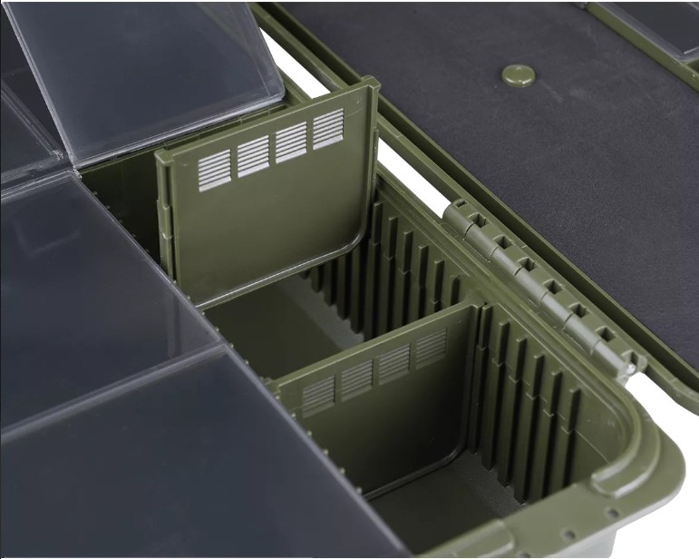 Багатофункціональна коробка, яка підійде для флет-фідерної та коропової ловлі. Виготовлена з міцного ABS-пластику та поліпропілену, що забезпечує довговічність та стійкість до погодних умов.