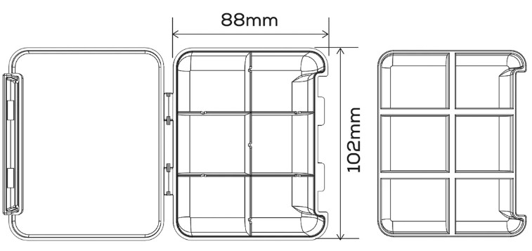 Компактна коропова коробка для зберігання та транспортування аксесуарів. Вона має шість фіксованих комірок та зйомну вставку з додатковими шістьма комірками, що забезпечує зручну організацію оснастки.
