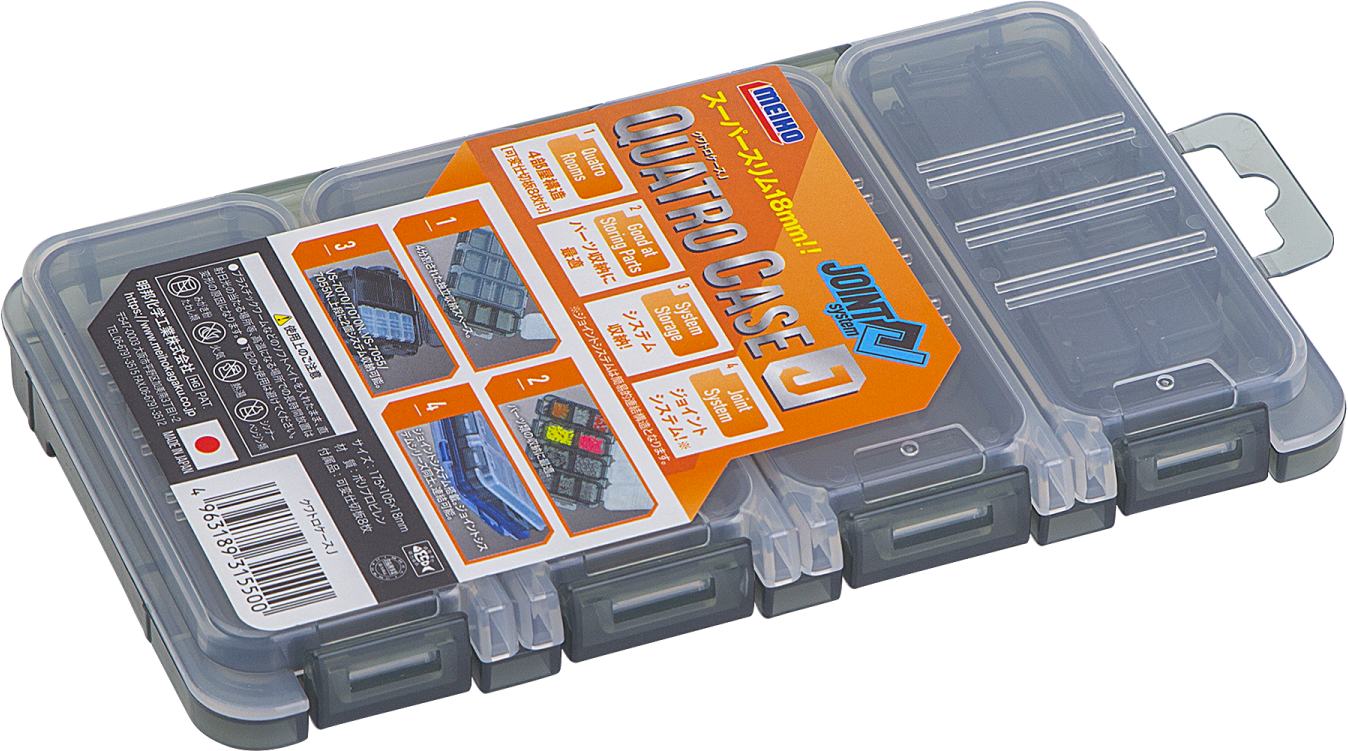 Meiho Quatro Case J – це тонка і зручна коробка від японського бренду Meiho, призначена для зберігання дрібних риболовних аксесуарів: гачків, вертлюжків, застібок, заводних кілець, бусинок та інших елементів оснастки.