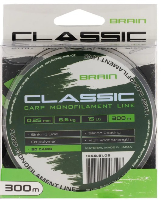 Волосінь Brain Classic Carp Line (3D camo) 300m 0.28mm 18lb 7.9kg