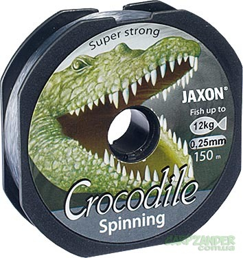 Серія лісок Crocodile Spinning від Jaxon володіє невеликою розтяжністю, що допомагає краще контролювати і анімувати приманки, і хорошими абразівоустойчівимі властивостями. Добре підійде рибалкам які віддають перевагу використовувати коливаються і обертаються блешні, а також середні за розміром воблера не потребують ривковой проводки. Волосінь Crocodile Spinning має світло-сірий колір, який практично не помітний в товщі води, і в той же час допомагає візуально контролювати проводку.
