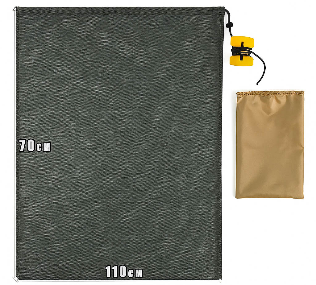 Мішок призначений для безпечного зберігання риби. Виготовлений із м’якого, але міцного матеріалу, який не травмує рибу та забезпечує хорошу циркуляцію води, завдяки чому улов надовго залишається живим.