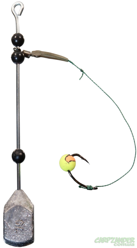 Виконана на міцній, жорсткій спиці, на яку насаджується через отвір технопланктон. Один гачок №2 на повідці який може фіксуватись впритул з плавучою насадкою. Гачок радимо фіксувати ниткою ПВА або кукурудзяною паличкою. Це оснащення має змінний груз, який фіксується на різьбі. Можна застосовувати технопланктон будь якого розміру та ваги – від 40 до 120грамів.