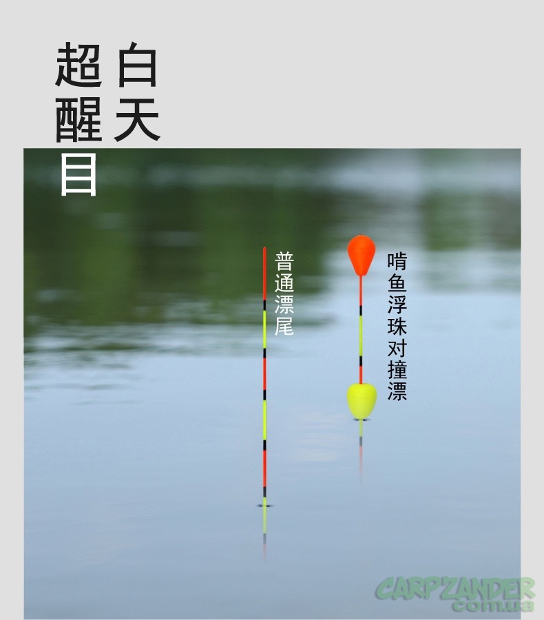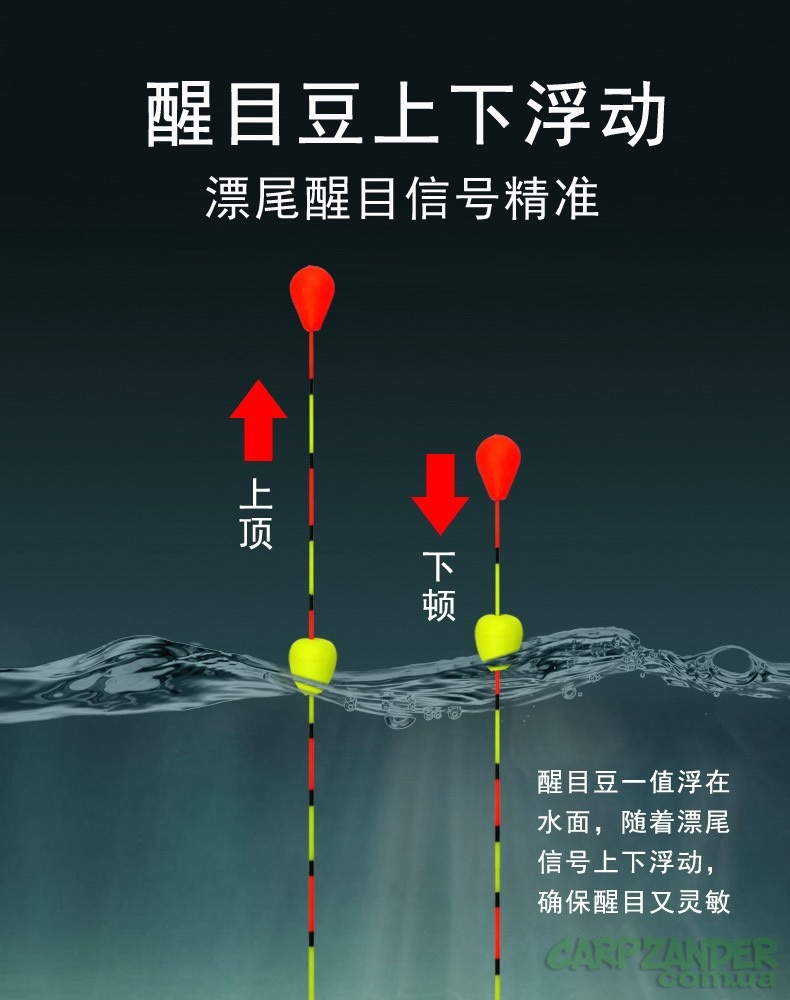 Концепція "плаваючої бобишки" (上下浮动 / рух вгору-вниз), показана на зображеннях, працює за принципом гравітаційної індикації: при клюванні нижня бобишка починає рухатися вгору, залишаючись на поверхні води, а відстань між елементами змінюється — це миттєво помітно навіть здалеку.