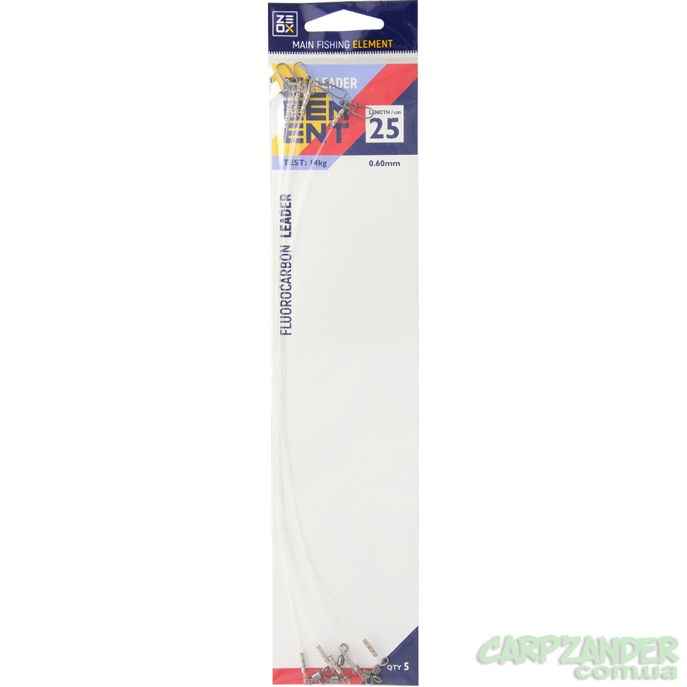 Повідець Zeox флюорокарбон 25cm 0.60mm 14kg 5шт