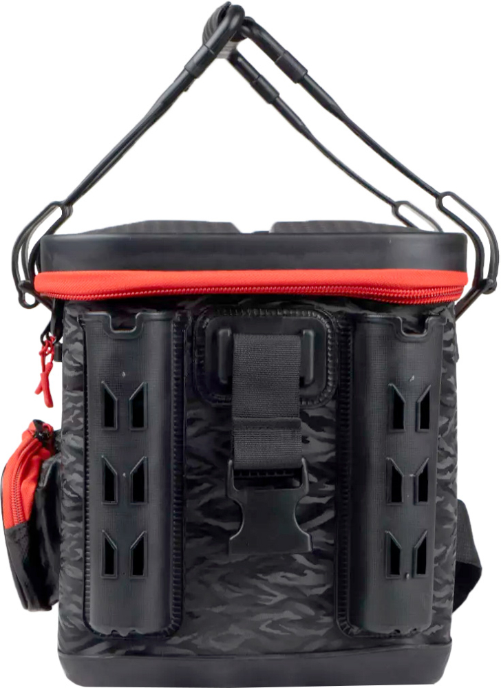 Ручки сумки міцно припаяні до корпусу та витримують повне навантаження навіть важкими снастями чи уловом. Для зручності перенесення вони фіксуються між собою, забезпечуючи комфортне утримання.