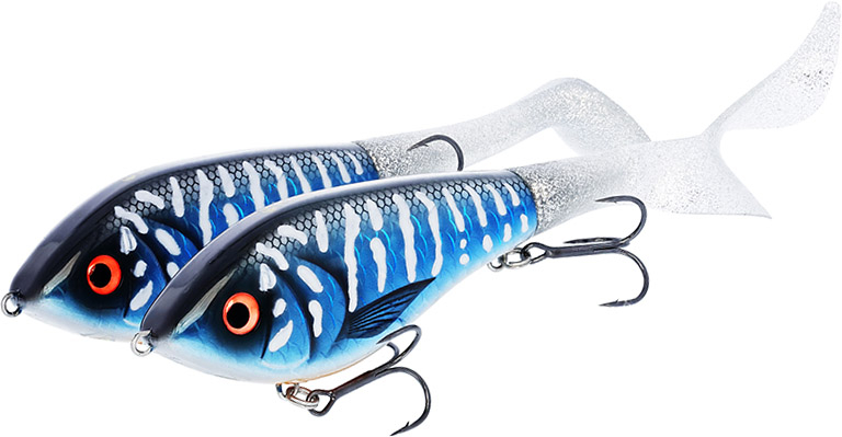 Swim Tail – це вражаючий новий варіант легендарного воблера Swim. Створений на основі оригінальної моделі довжиною 12см, він оснащений зручним гвинтовим кріпленням, що дозволяє змінювати хвіст за секунди. Це відкриває нові можливості у ловлі щуки.